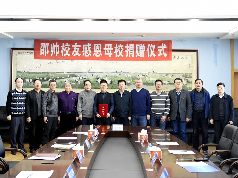 副校长刘胜辉为邵帅校友颁发捐赠证书