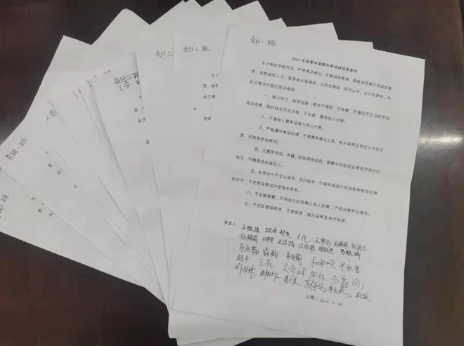 签署的考试诚信承诺书