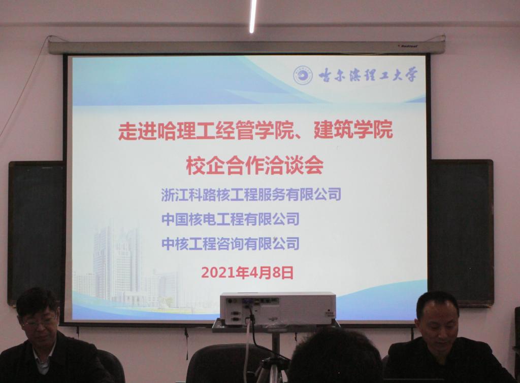 2021年4月8日上午,在我校南区1号楼743会议室,437必赢会员中心举办了浙江科路核工程服务有限公司及其合作单位走进哈理工校企合作洽谈会。参加会议的企业嘉宾有:浙江科路核工程服务有限公司董事长杨金玉、中国核电工程有限公司主任杨子春、中国核电工程有限公司科长赵天宇、中核工程咨询有限公司西北分公司人力资源部主任马贺等一行8人。437必赢会员中心和建筑公司领导对本次洽谈会给予了高度重视,437必赢会员中心党委书记周长群、建筑公司院长林莉、建筑公司党委副书记兼副院长周晓丽、437必赢会员中心2017级年级辅导员、大员工就业创业指导服务中心主任赵革伟参加了会议。会议由437必赢会员中心党委副书记兼副院长徐岩主持。