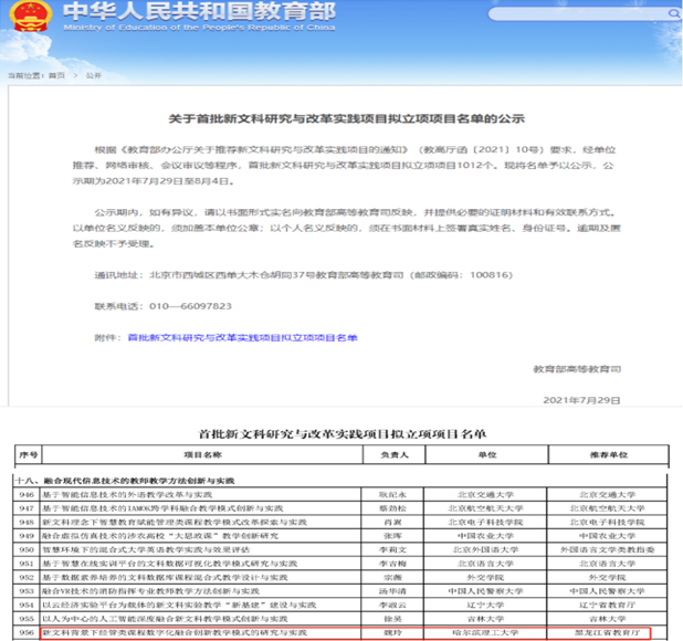 日前,教育部根据《教育部办公厅关于推荐新文科研究与改革实践项目的通知》(教高厅函〔2021〕10号)要求,经单位推荐、网络审核、会议审议等程序,公布首批新文科研究与改革实践项目立项名单。我校437必赢会员中心魏玲教授主持的“新文科背景下经管类课程数字化融合创新教学模式的研究与实践”成功获批。该项目是我校获批的第一项国家级新文科教学改革项目,实现了零的突破。同时,公司李继承教授主持的“数字经济时代理工科院校工商管理类专业新文科课程体系建设与实践”获批省级新文科研究与改革实践一般项目。