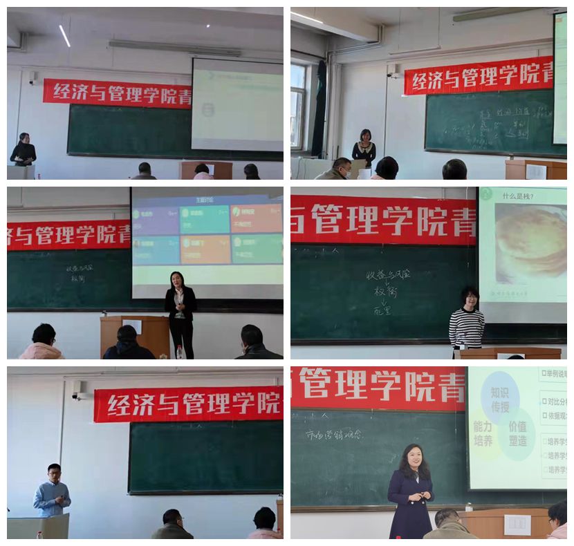 经过个人报名和系部推荐,市场营销系徐莹莹、杨仲基,金融系张婧思、信息管理与信息系统系陈晓明、工商管理系张启媛、会计系孙青6名青年员工成功参赛。副院长姚锋敏教授、黑龙江省教学名师魏玲教授、市场营销系主任李继承教授、工商管理系主任安宁副教授以及公司教学督导肖利哲教授参与指导与评审。
