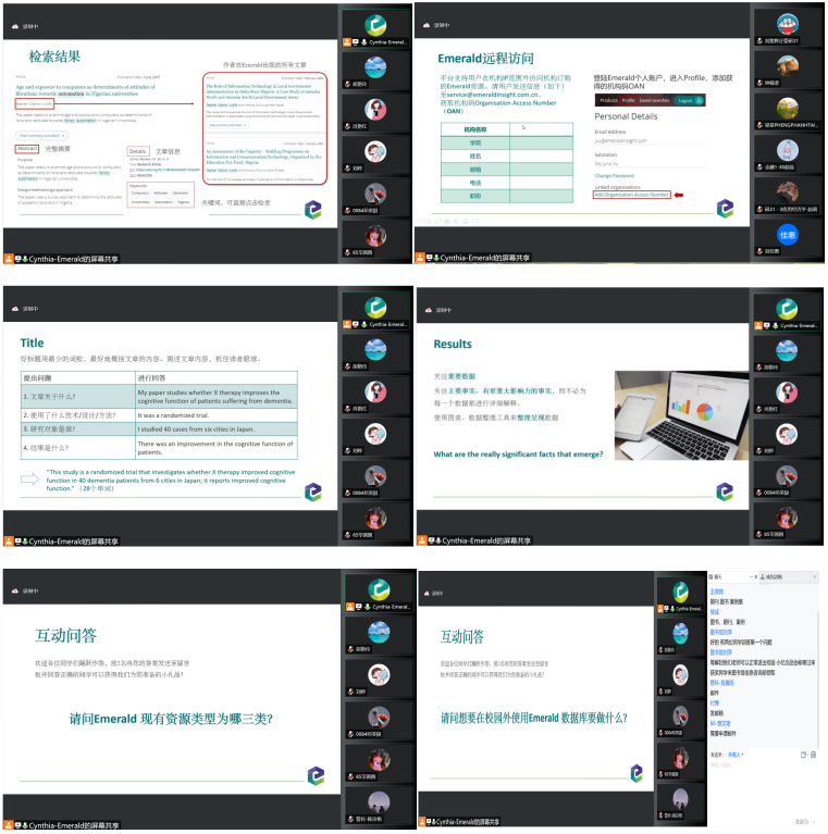 在讲座互动过程中,通过设置问题环节与赠送小礼物相结合的形式,积极鼓励员工回答问题,现场讲座气氛十分活跃。讲座内涵深刻、内容丰富、形式生动,解决了师生在Emerald资源使用与英文论文投稿中的困惑,达到了预期效果,取得了圆满成功!