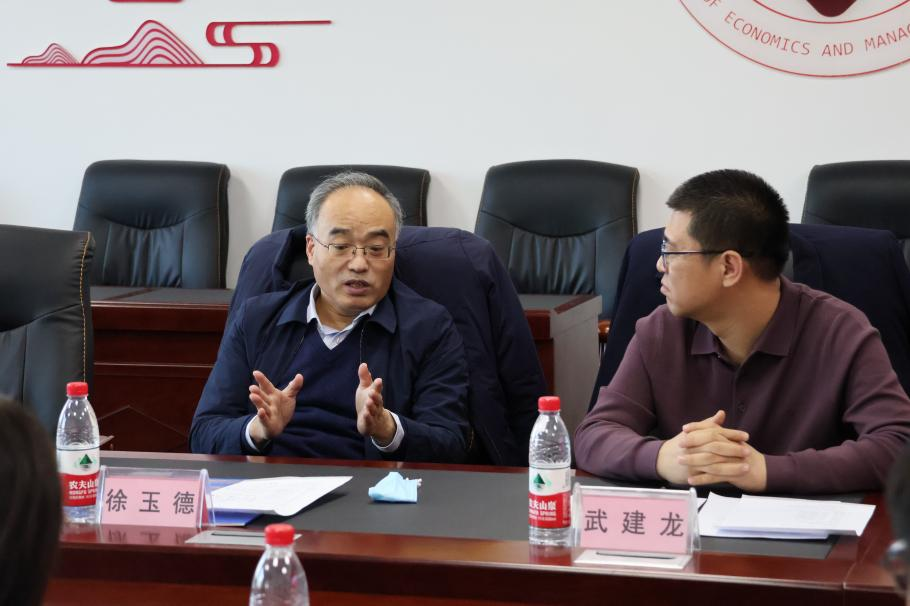 徐玉德副院长就工商管理学学科目前情况,重点地了解了研究生招生、毕业等方面的情况,并围绕人才培养、公司团队、科学研究、学术交流及社会服务等五个方面针对工商管理学学科建设提出了建设性意见和可行性建议。