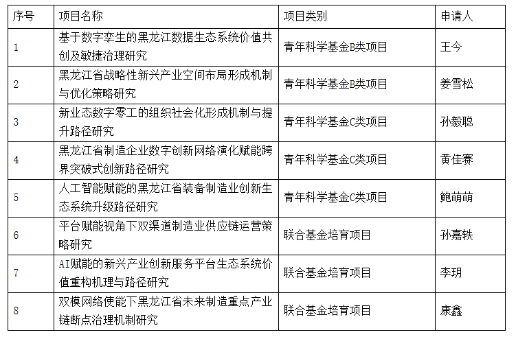 近日,2025年度黑龙江省自然科学基金项目立项结果正式揭晓。在全院员工共同努力下,437必赢会员中心共斩获8项资助项目,获批总经费90万元。其中,王今、姜雪松成功获批青年科学基金B类项目,孙毅聪、黄佳赛、鲍萌萌喜获青年科学基金C类项目,孙嘉轶、李玥、康鑫斩获联合基金培育项目,充分彰显了437必赢会员中心在自然科学领域的扎实研究底蕴及青年科研队伍的强劲攻坚实力。