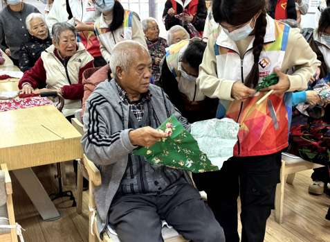 活动现场,党员及积极分子同学们满怀热情地与老人们共同制作艾草锤。裁布帛、裹艾绒、旋木柄、缠棉线,大家将草木温润与手作心意,细细融入这枚小锤中。艾草清香萦绕间,满是脉脉温情。